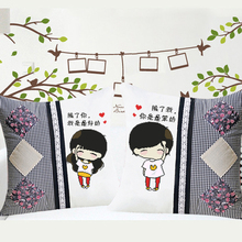 精准印花十字绣抱枕新款 创意个性黑色卡通情侣一对枕靠枕爱情
