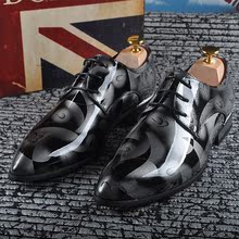 春季男士韩版潮流新款印花内增高皮鞋青年英伦时尚尖头发型师男鞋