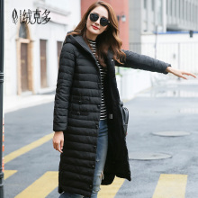 绒克多反季清仓羽绒服女过膝中长款轻薄大码韩版修身长袖连帽外套