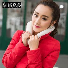 2015新款冬季韩版女装加厚修身显瘦纯色短外套娃娃领短款羽绒服女
