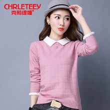 短款套头毛衣女春装新款韩版娃娃领短款打底衫女装针织衫修身外套
