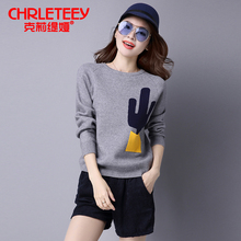 2017春季韩版新款时尚短款纯色抽象图案针织衫毛衣衫修身潮流女