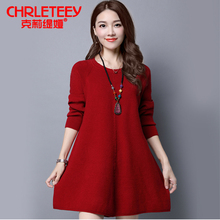 针织毛衣女套头中长款圆领长袖百搭韩版宽松大码打底衫连衣裙外套