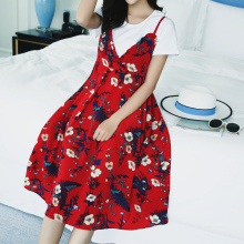 孕妇装时尚韩版显瘦雪纺碎花孕妇吊带裙+T恤两件套夏装孕妇连衣裙