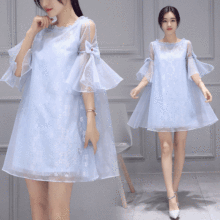 2017新款孕妇装夏装时尚欧根纱蕾丝孕妇上衣潮韩版大码孕妇连衣裙