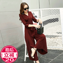 2017春季新款时尚女装V领系带阔腿裤优雅气质显瘦连体裤大码长裤