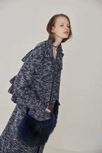 ANNBOO2017秋冬新款 蓝白色大衣风衣加长毛毛兜外套