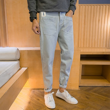 春季新款弹力牛仔裤男小脚裤青年韩版修身长裤黑色大码哈伦九分裤
