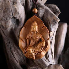 御金品㊣澳洲檀香木吊坠雕刻工艺佛像菩萨平安挂饰项链 一叶观音