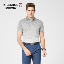 K-boxing/劲霸短袖T恤男士夏季印花丝光棉蚕丝翻领半袖体恤男装潮