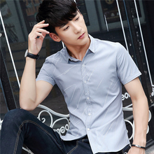 夏季短袖衬衫男青年韩版修身薄款条纹商务休闲免烫半袖衬衣男装潮