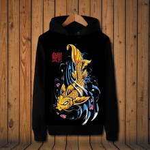 中国风复古印花外套春秋季男装套头卫衣鲤鱼纹身图案衣服加肥大码