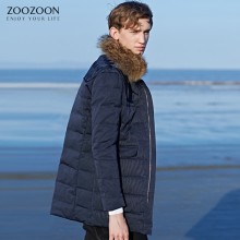 男士真毛羽绒服 中长款加厚保暖男外套韩版修身加长防寒服风衣潮