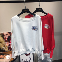 2017春季新款韩版宽松蝙蝠袖后背胶印字母印花短款大圆领卫衣女春