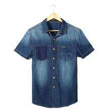 潮牌牛仔衬衫夏季薄款开衫外套青少年韩版潮流修身学生短袖衬衣男