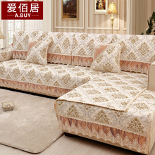 爱佰居 冬季沙发巾罩加厚毛绒沙发套四季欧式简约法兰绒沙发垫子