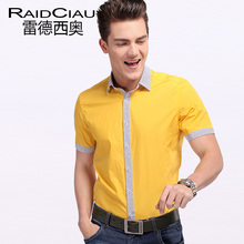 雷德西奥 衬衣男士 黄色衬衫 男 短袖 潮 韩 修身型纯棉时尚