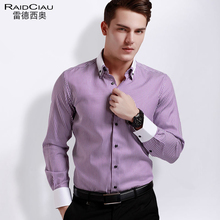 雷德西奥紫色长袖纯棉免烫个性衬衣男士衣服衬衫纯色寸衫修身款型