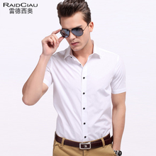 雷德西奥时尚男装白衬衫工装男士短袖职业装修身型绅士纯棉衬衣