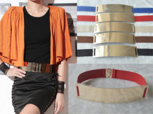 徐濠萦同款铁片金属片韩国版金色镜面腰带宽款松紧女士式装饰腰封