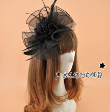 欧美夸张派对舞台演出网纱花朵头饰发饰 新娘羽毛面纱发夹配饰品