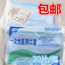 20片包邮 医用一次性口罩 三次无纺布 防尘口罩 耳挂式 绑带式