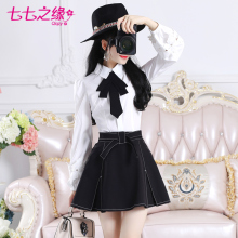七七之缘 2016春春装新款韩版 白色系带百搭修身打底长袖女装衬衫