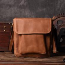 2017新款复古头层牛皮单肩男包文艺斜挎包手工疯马皮潮流ipad包
