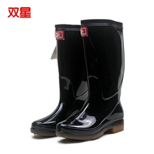 双星女款牛筋厚底高帮雨鞋 长筒高帮耐油黑色雨靴水鞋 工矿靴