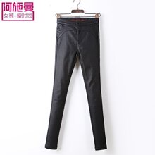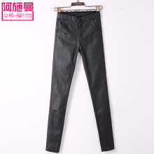 雅格斯曼女裤2016新款秋冬涂层仿皮亮丝打底裤女小脚长裤加绒加厚