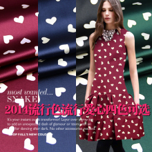 吴双波普风爱心桃心波点重磅弹力服装真丝布料面料酒红墨绿深蓝