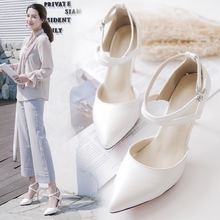 夏季新款中空鞋尖头交叉一字扣带女凉鞋细跟高跟鞋休闲大码女鞋子