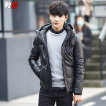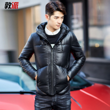 敦派男装2016新款男士修身加厚羽绒服短款连帽青年大码冬季皮外套