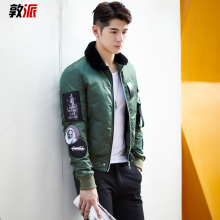 敦派男装2016新款羽绒服男短款羊羔毛领英伦加厚青年冬季外套 潮