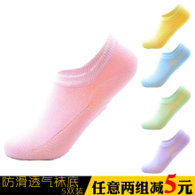 5双浅口隐形冰丝鹿人船袜女夏季硅胶防滑肉色棉底薄短袜子女