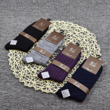 5双包邮鹿人8033男袜中筒桑蚕丝莫代尔双针袜子秋冬厚款纯色纯棉
