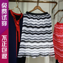 汇欧时力依2017新款高腰条纹蕾丝半身裙女夏中长款裙子1JY2075470