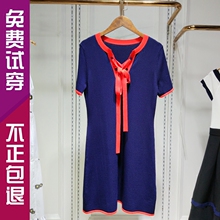 汇欧时力依2017新款夏装修身撞色短袖高腰针织连衣裙女2JF2035020
