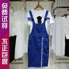 汇欧时力依2017新款夏装排扣高腰牛仔背带连衣裙女2JM1083430