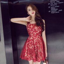2017夏季新款女装时尚小清新无袖修身显瘦短裙子中长款蕾丝连衣裙