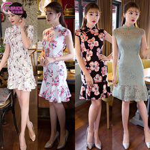 旗袍短款鱼尾2017新款少女日常连衣裙显瘦修身改良时尚旗袍春夏装