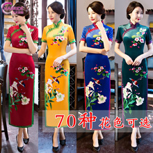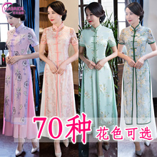 旗袍短款2016新款春夏短袖改良修身中长连衣裙日常复古女棉麻宽松