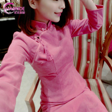 旗袍七分袖秋冬2015新款修身短款连衣裙日常改良加厚复古显瘦优雅