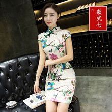 旗袍连衣裙夏改良短款修身少女2016新款时尚日常复古性感显瘦大码
