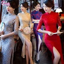 旗袍长款复古显瘦连衣裙修身2016女夏日常宴会改良性感蕾丝七分袖