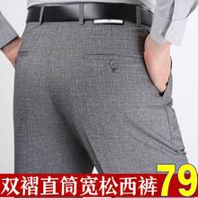 西装裤男士双褶西裤夏季薄款高腰宽松免烫中年商务正装男西裤