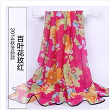 春夏秋冬花边雪纺围巾批。发3元以下丝巾纱巾批.发1-2元淑女韩版