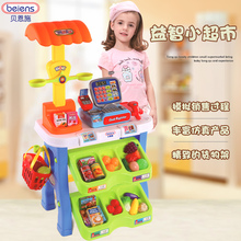 贝恩施过家家购物车玩具套装男女孩超市仿真蔬菜水果手推车玩具