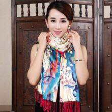 2016真丝丝巾上海故事披肩长款桑蚕丝围巾双面保暖女羊毛羊绒秋冬