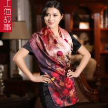 上海故事桑蚕丝丝巾女正品女真丝丝巾围巾披肩两用长款丝绸中国风